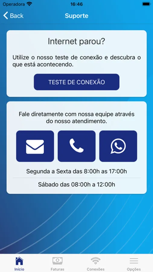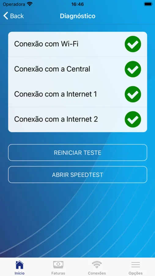 • Realização testes de conexão e velocidade;