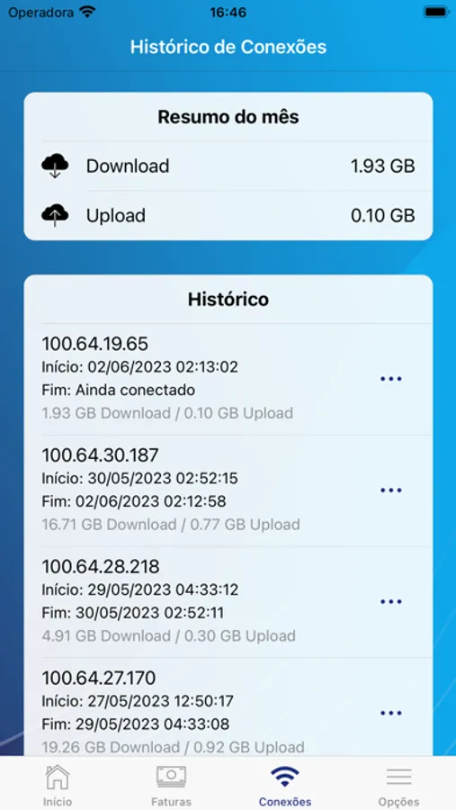 • Visualização de histórico de conexões;