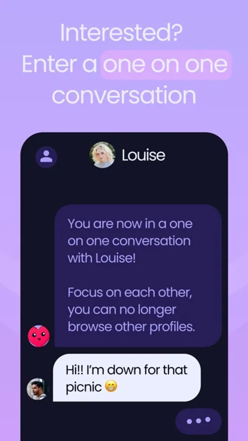 If you click, you can choose to start a one on one conversation. Neither of you will be able to keep browsing profiles or to have simultaneous conversations, so focus on each other!