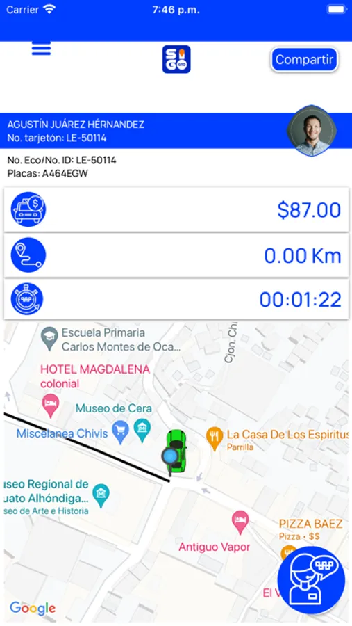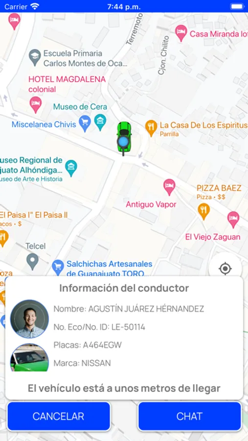 4. Sabrás los datos del operador o conductor, así como del vehículo que te brindará el servicio, mismos que se encuentran registrados ante la Dirección General de Transporte del Estado de Guanajuato.