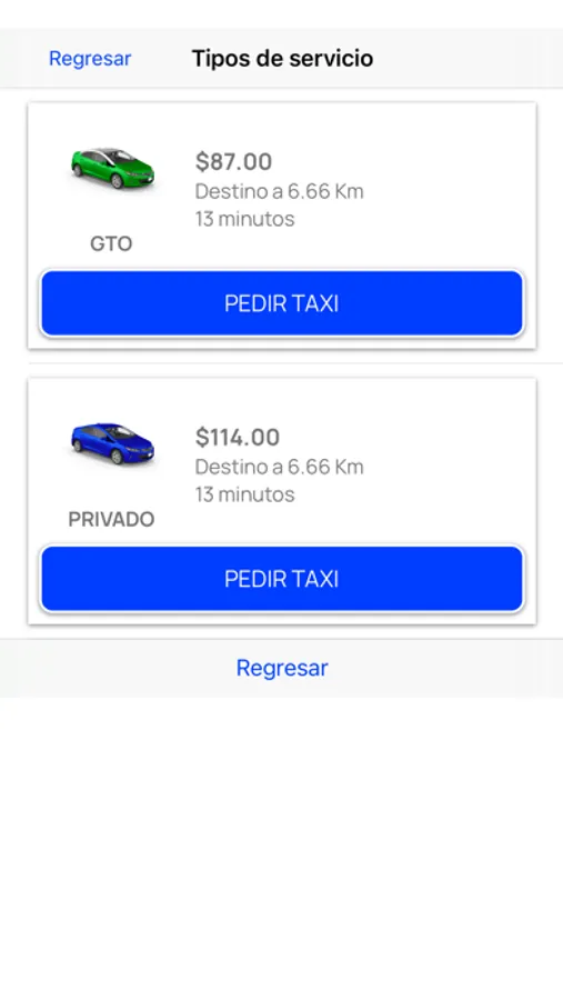 5. Elegir el servicio de tu preferencia: Taxi o Privado.