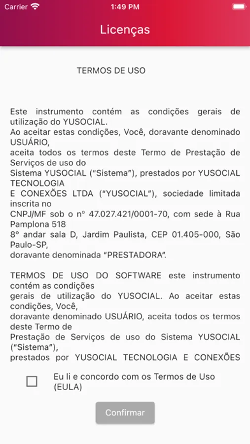 Termos de uso: http://wkf-politica-privacidade.s3-website-us-east-1.amazonaws.com/yusocial/mobile/TermosdeUso.pdf