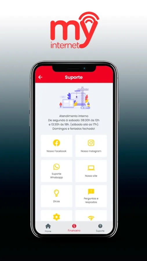 O aplicativo completo com suporte rápido na palma da mão. Ao alcance de 1 clique.