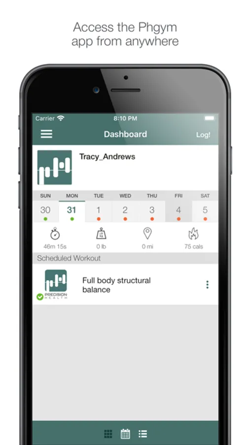 Log your Precision Health workouts from anywhere with the Precision Health workout logging app! View your logged workouts, see upcoming scheduled workouts, and book appointments inside the app. Track your progress and get the most out of your Precision Health workouts!