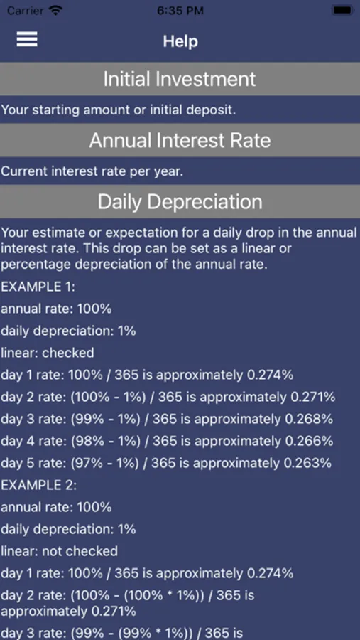*Additional parameters to customize your earned rate over time, i.e. interest depreciation linearly over time or as a percentage.