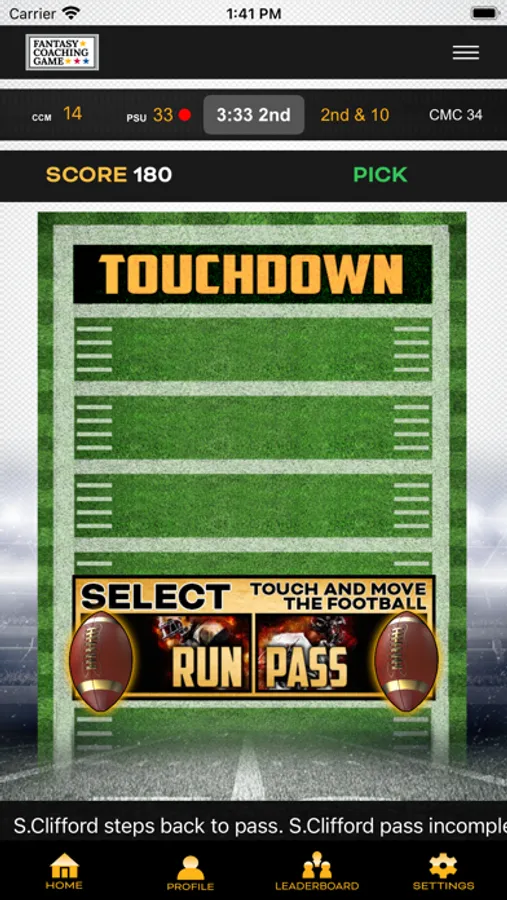 Try the first fantasy sports app focused on making in-game play call predictions. Play the Fantasy Coaching Game to connect to live football games all season long, predict every play just before it happens, and score points to compete against your own personal groups. All Fantasy Coaching Games are completely free to play.