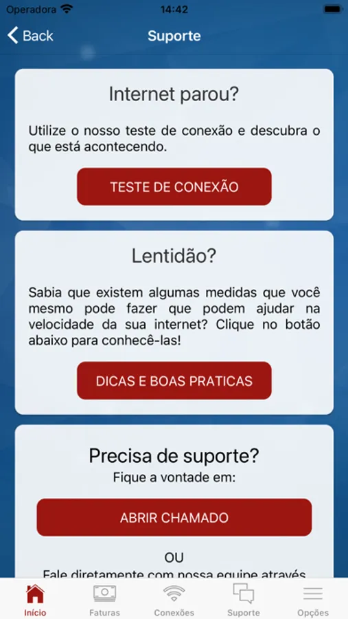 • Realização testes de conexão e velocidade;