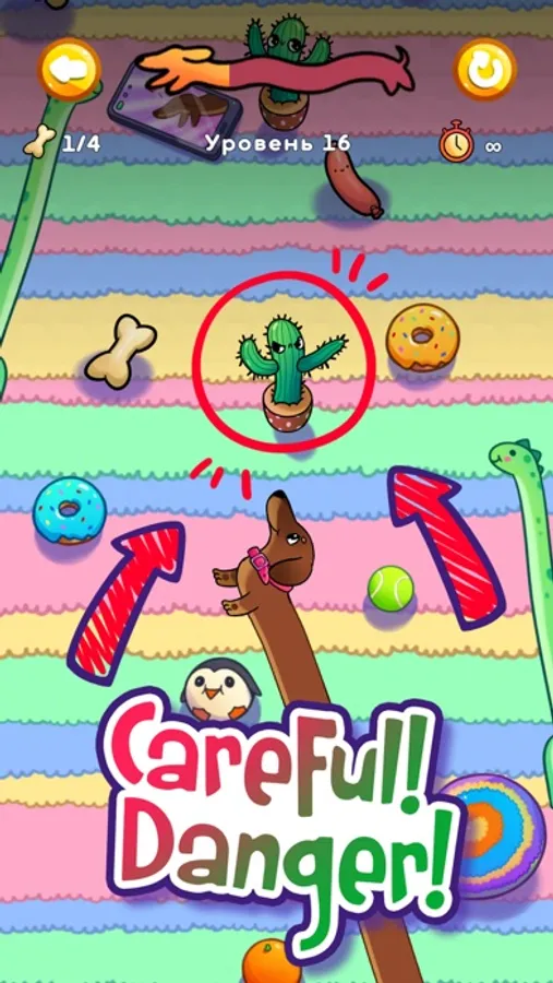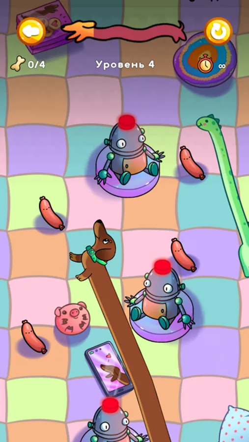 2. On the way to the finish, collect food to increase the stretch of the dog;