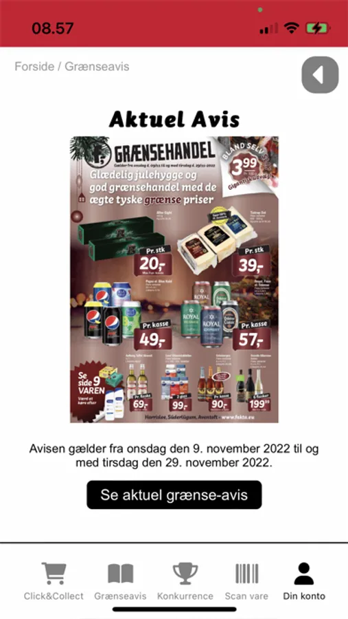 Se vores gældende grænse-avis i appen og spar masser af penge med altid gode tyske grænsepriser. Vi har priser der er værd at køre efter!