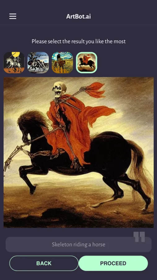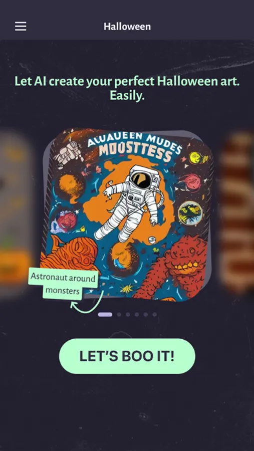 The latest AI technologies and well-trained neural network will turn your craziest ideas into real art! Describe your thoughts in a few words and get the ball rolling. Black cat with a candle in one paw and a pumpkin in another? Too easy! Spooky pink ghost lost in Venezuela? Done! Bewitched Charlie Chaplin parking his broom? That’s what we are waiting from you.