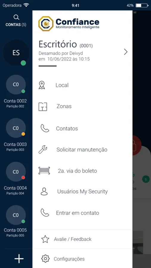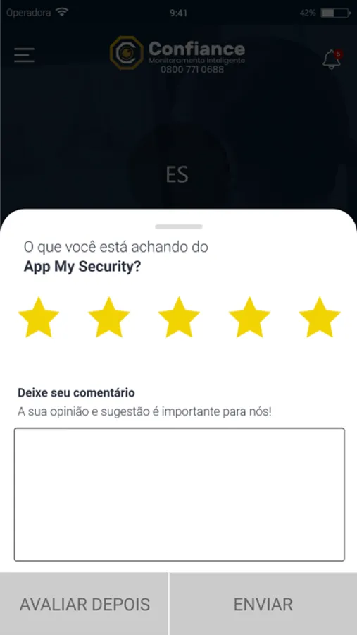 O Confiance Monitoramento é um aplicativo móvel onde o cliente monitorado pode acompanhar diretamente via celular ou tablet todas as atividades do seu sistema de segurança. Por meio do aplicativo, é possível saber o status do painel de alarme, armá-lo e desarmá-lo, visualizar as câmeras ao vivo, verificar eventos e ordens de serviço abertas, além de realizar chamadas telefônicas para contatos cadastrados no seu perfil. É a segurança que você precisa na palma da sua mão.