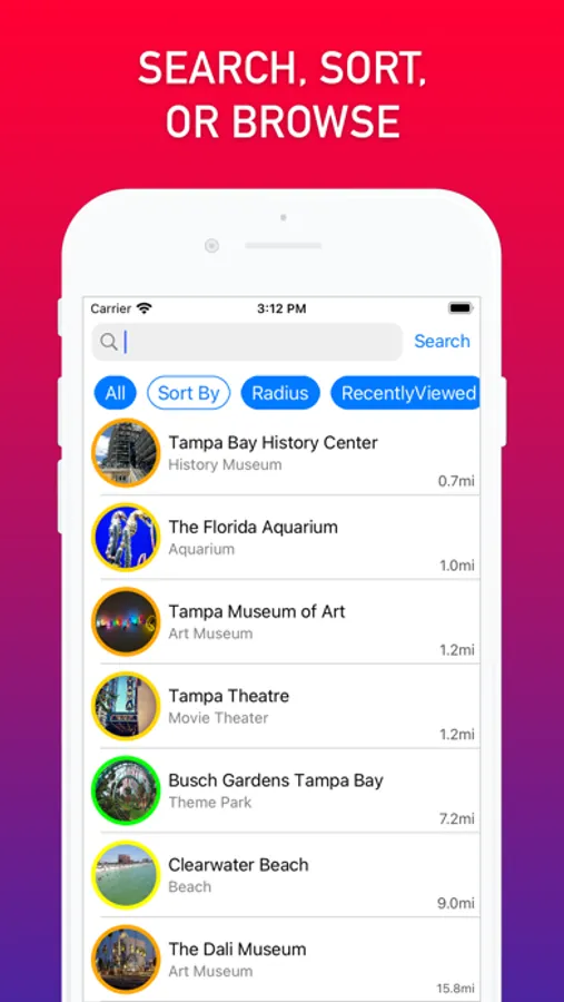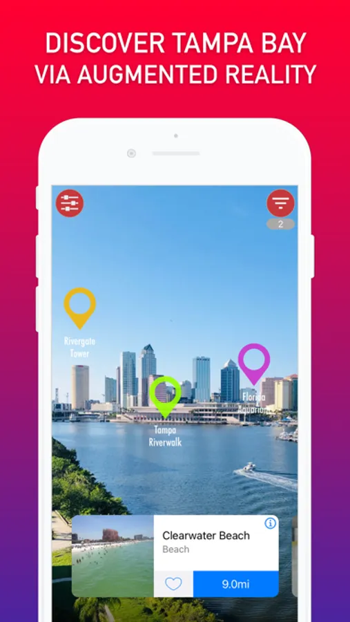 EXPERIENCE TAMPA BAY in a new, futuristic way by looking into your phone’s camera to find all the most popular places of interest around you. 360 TB is an Augmented Reality (AR) app that displays places you want to find anywhere you point the phone.