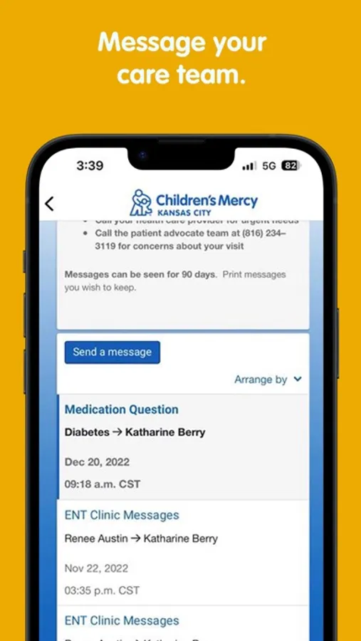 The messaging feature allows you to communicate easily with your Children’s Mercy care team. Your care team can also add things like clinic notes and educational materials about your child’s health. Participating providers can also allow you to add your HealthKit data to your electronic medical record.