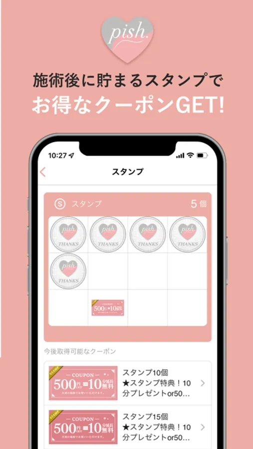 ご来店スタンプをためるとお得なクーポンが発行されます(ご利用条件がある場合がございます)