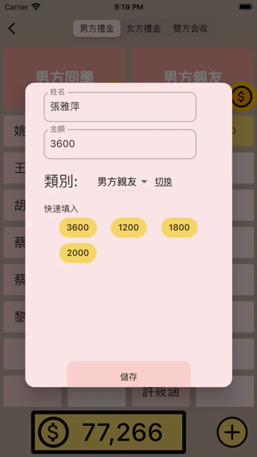 贵宾礼簿-寿宴,婚宴,礼金,份子钱,人情,送礼账本,酒席预算