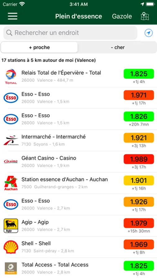 - Détection automatique de la localisation ou recherche par ville, code postale, rue...