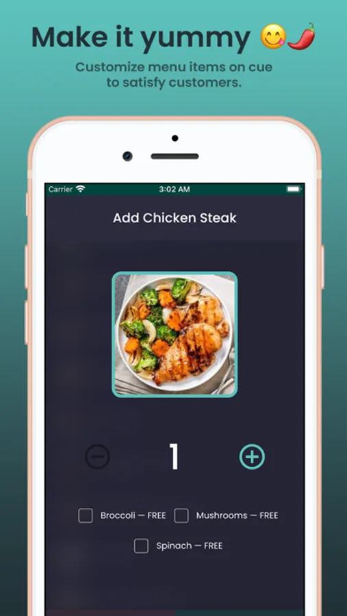 On mobile, waiters can use an item searchable menu to swiftly add customer orders to existing tables with options and notes.