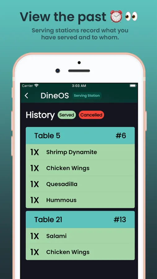 DineOS Tools allow serving station staff to enjoy increased efficiency in communication, cut down on time spent on each table with sorted and organized station workflows and smart item grouping.