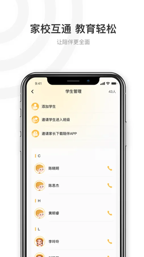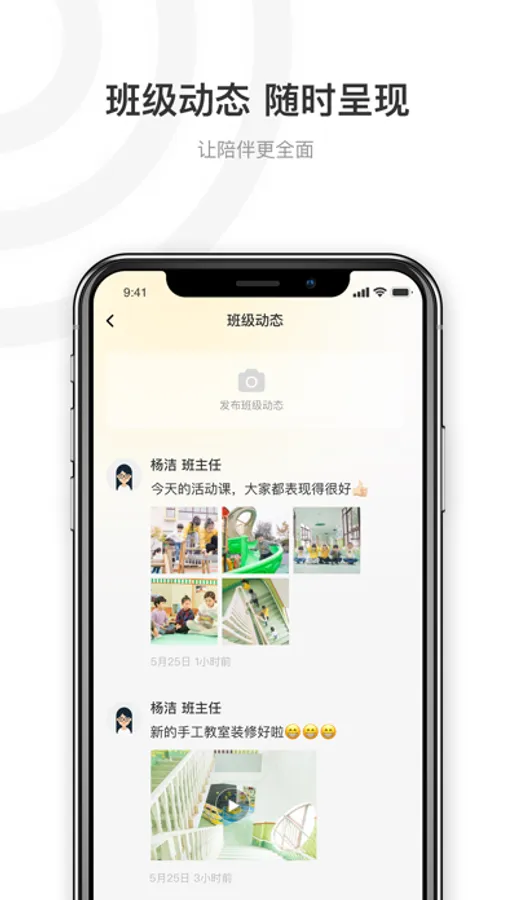 陪伴APP利用互联网打通了家校之间的沟通难题,智能家校互动,时刻了解学生在校情况,有效促进校园、老师、家长沟通。