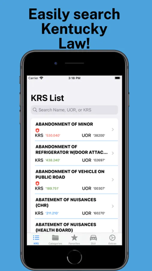 Introducing KRSUOR, your comprehensive and indispensable resource for navigating the intricate web of Kentucky Laws. Whether you're a legal professional, law enforcement officer, or simply an individual seeking accurate information, KRSUOR is the ultimate app that empowers you with instant access to an extensive database of Kentucky charges and categories.