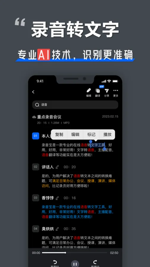 ①【会议记录】:录音宝可以帮助您在会议期间实时转换音频为文字,方便您随时查看、整理和分享会议内容。
