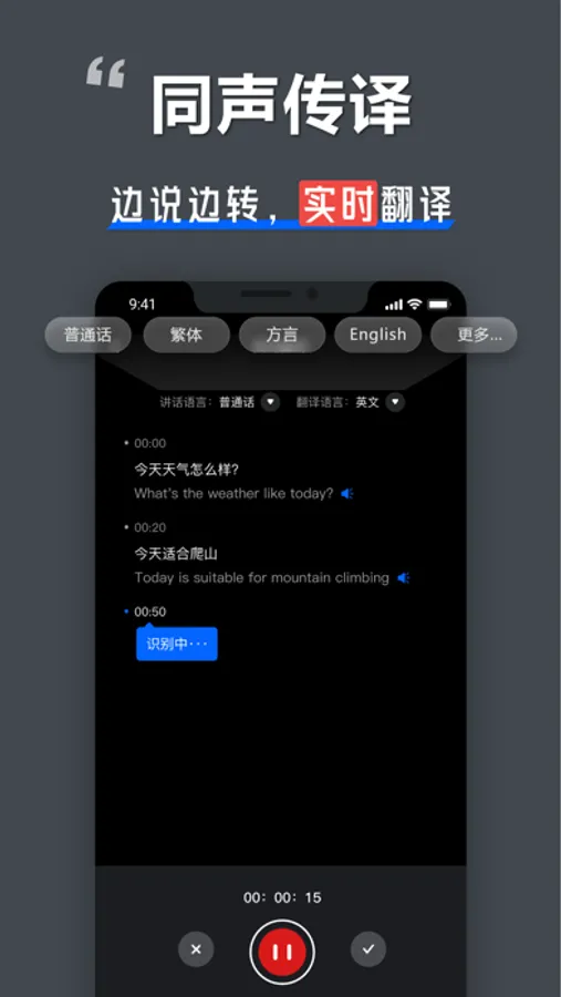⑤【口译翻译】:录音宝可以将语音转换为实时文本并翻译为其他语言,方便沟通和交流。