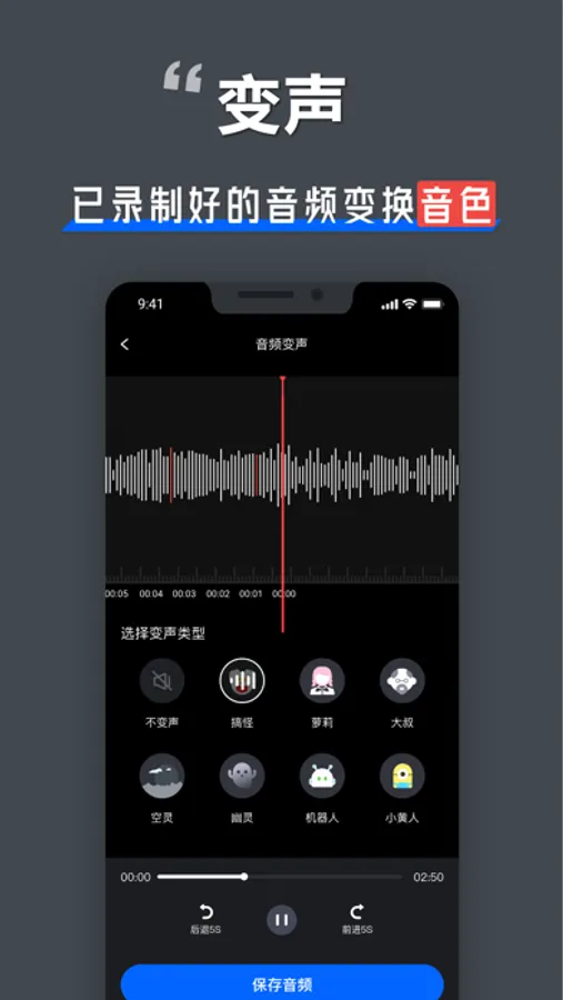 ⑦【音频编辑】:录音宝具有多种音频编辑功能,如裁剪、分割、拼接、变声等,方便您对音频文件进行处理和编辑。