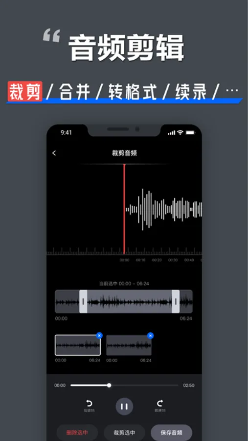 ①【录音裁剪】自由裁剪,保留需要的部分;