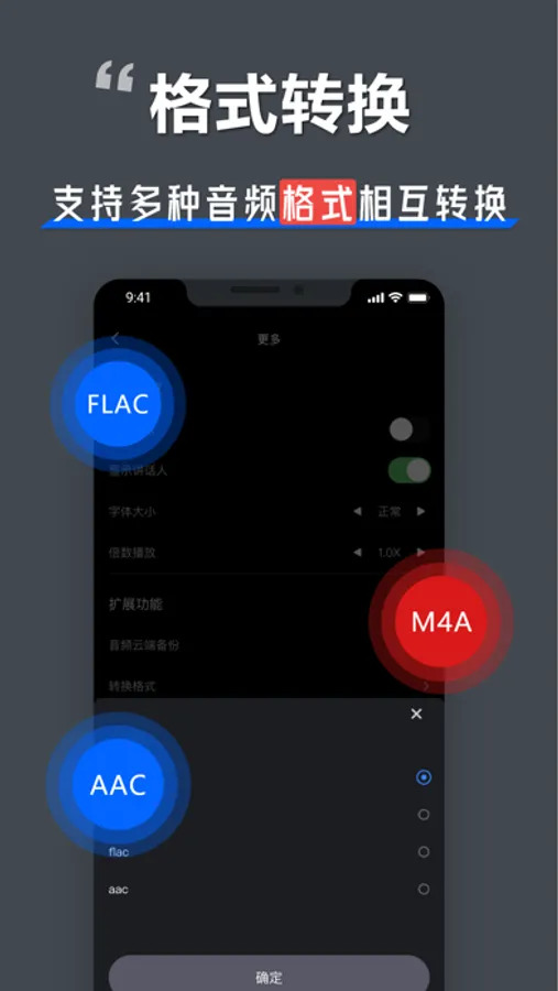 ⑧【音频转换】:录音宝可以将不同格式的音频文件相互转换,方便您使用不同的设备和软件播放和编辑音频文件。