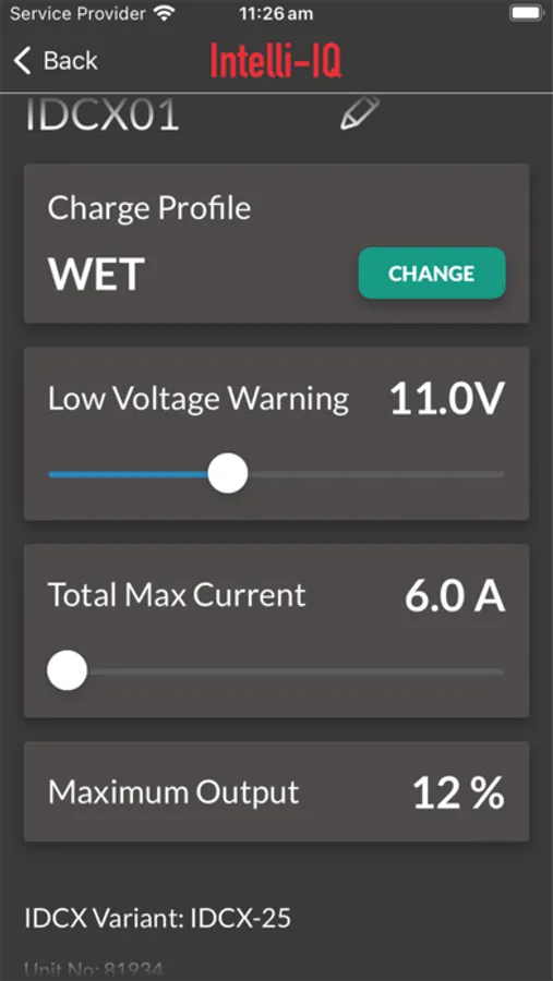 • A user-defined profile allowing the IDCX to charge any battery chemistry