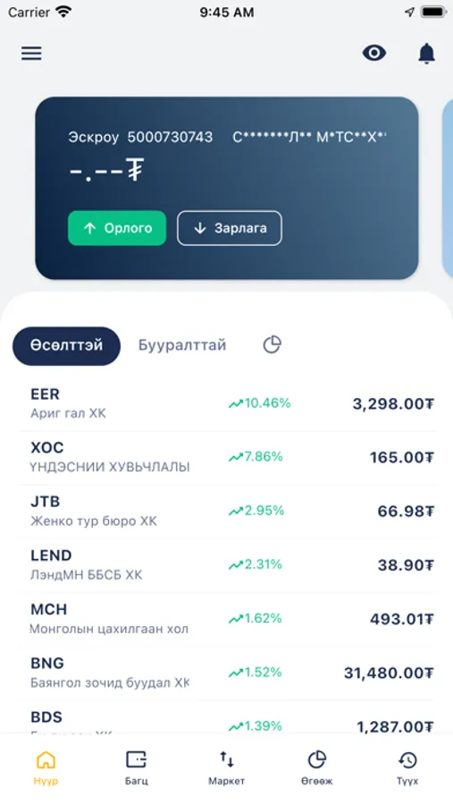 Таны хөрөнгийн зах зээлийн туршлагаас үл хамааран Монголын хөрөнгийн биржийн үнэт цаасны зах зээлд оролцох боломжтой DH Capital апп нь өөрийн хөрөнгийг хялбар ойлгомжтой удирдах, лавлах боломжийг бүрэн олгож байна.