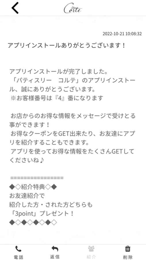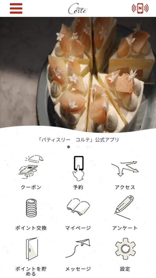 このアプリでは、コルテの最新情報の受け取りや便利な機能を使う事ができます。