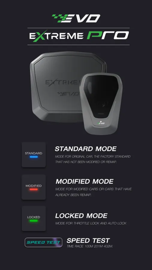 The Extreme pro app not only allows for a new driving experience but also sets the standard in product support. Updates for your car's tuning configuration and the tuning chip's software will be available instantaneously through the app. Get your Extreme Pro now and experience real power.