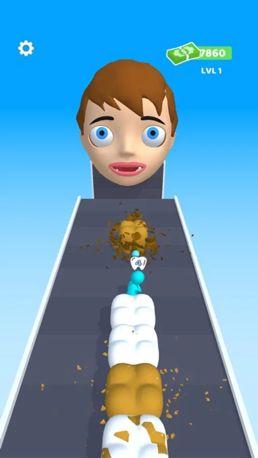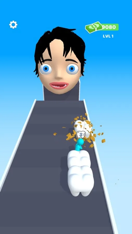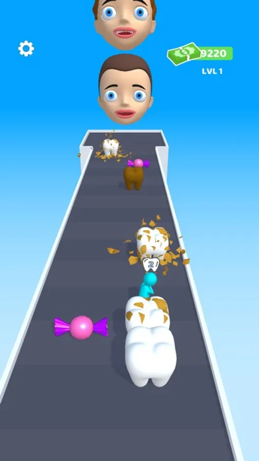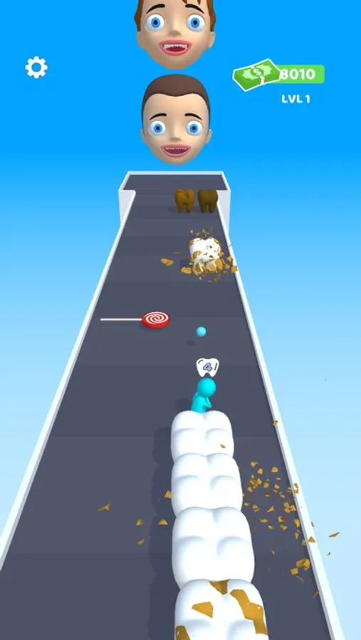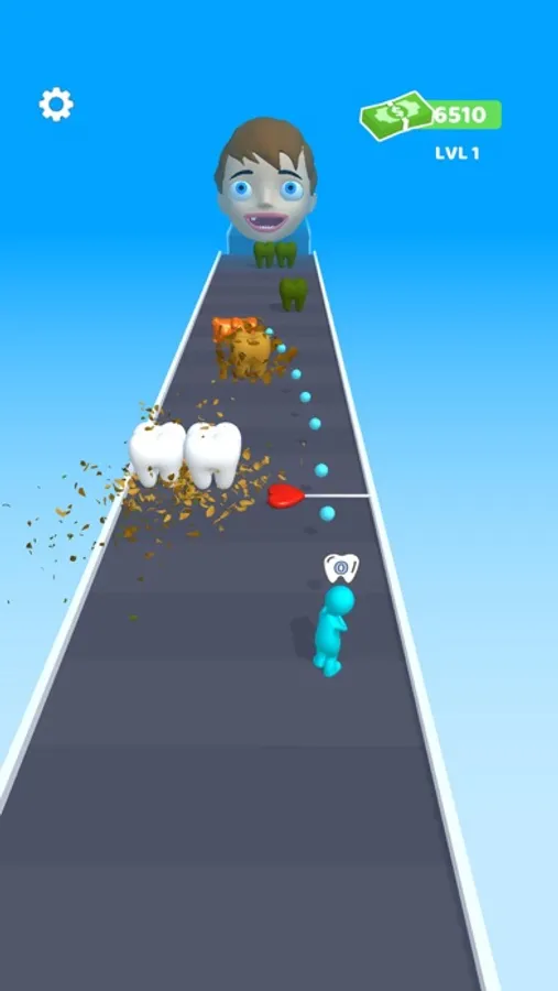 Clean and place all the different teeth you encounter by upgrade your weapon.