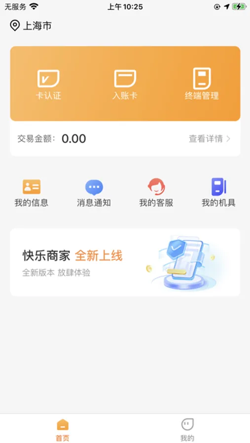 快乐商家,是一款全新POS商户线下工具, 全新的UI风格, 实现商户的入网注册、实名认证、POS设备绑定等操作.我们致力于打造广大持卡人及商户最安全、便捷、高效的支付产品。