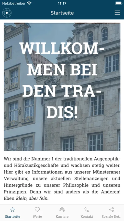 Sie wollen unsere Augenoptik- und Hörakustikgemeinschaft besser kennenlernen? In der App erhalten Sie einen Einblick über unsere Philosophie und Werte, die uns als traditionelle Gemeinschaft auszeichnen.