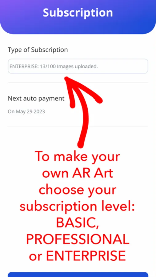 There are three levels of subscription: Basic, Professional and Enterprise. At the Enterprise level, you can schedule multiple videos to appear sequentially on an image at future dates, creating extra engagement with your AR audience.