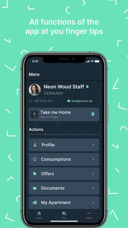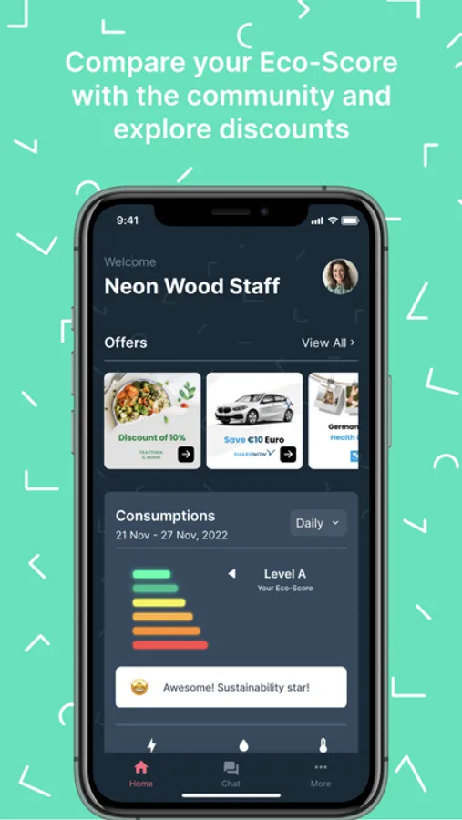 With the Neon Wood app you can check in easily, fill out the handover protocol or conveniently report damages on the way. Stay always up to date during your stay. Receive current information about your Neon Wood property, events and appointments, promotions as well as offers from the neighbourhood. You also have the opportunity to exchange ideas and get to know each other in our group chats on various topics. In addition, you will get an overview about your daily consumptions of electricity, water and heating, so you can make a comprehensive contribution to climate protection. Of course, we will give you further tips on saving energy and resources.