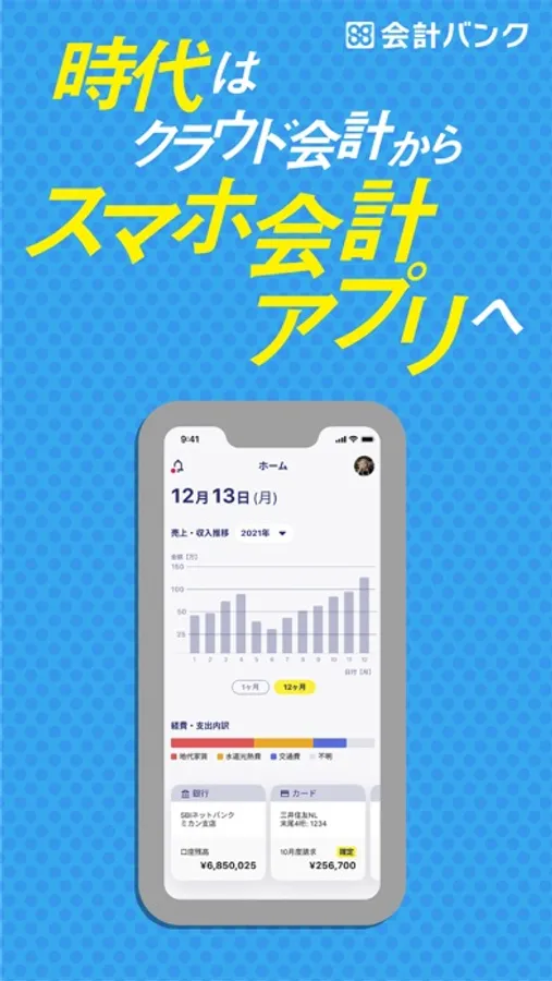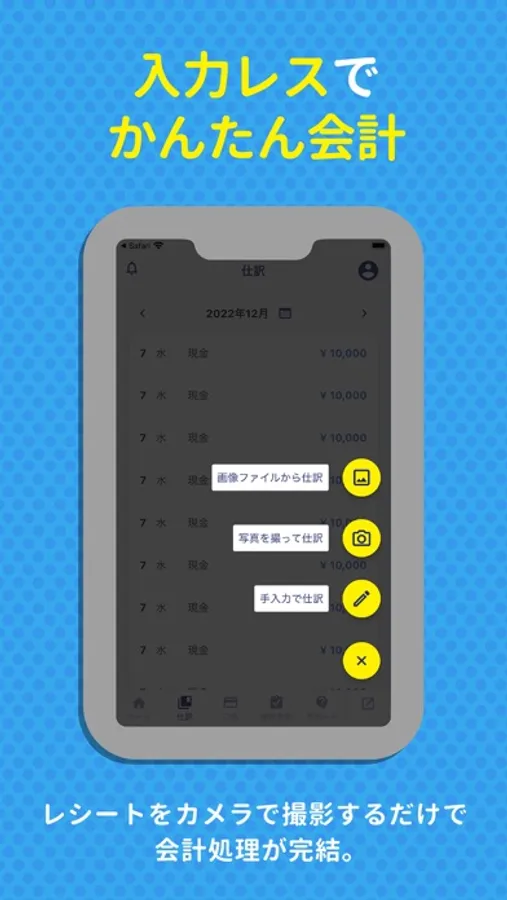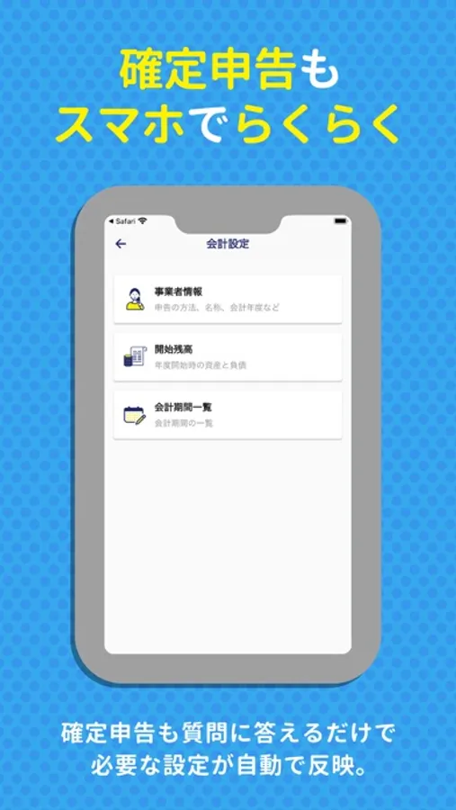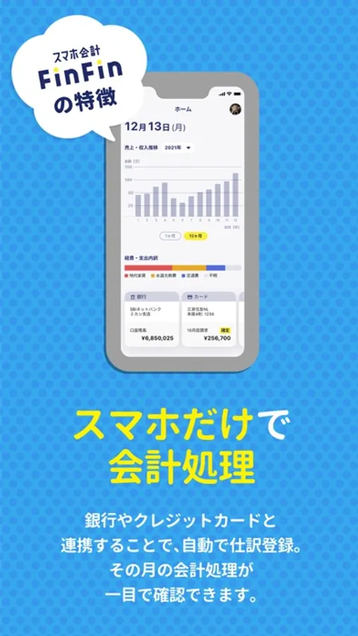スマホ会計は、スマートフォンだけで、日々の会計処理から確定申告まで、実施いただけます