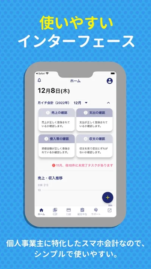 ・ホーム画面で、一目で売上・経費を確認