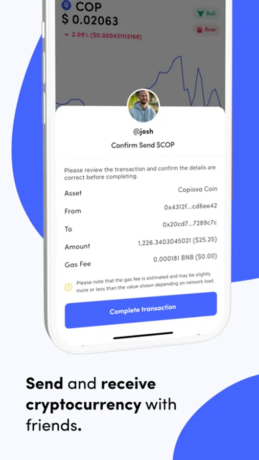 Social - Send Crypto socially to another Copiosa App user using their Copiosa Alias!