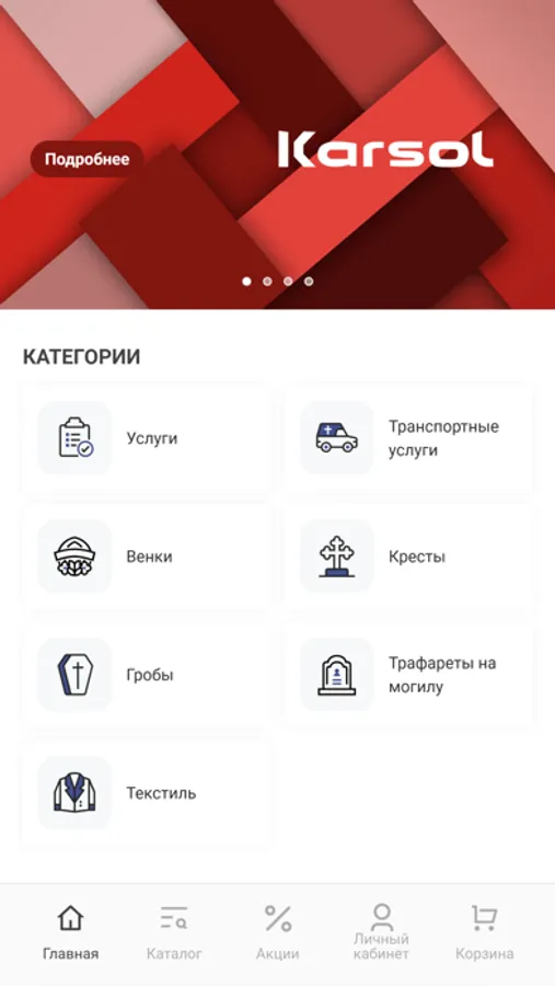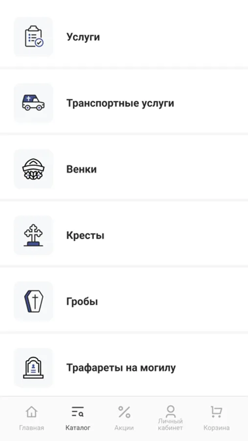 Приложение-каталог для формирования заказа на ритуальные товары и услуги.
