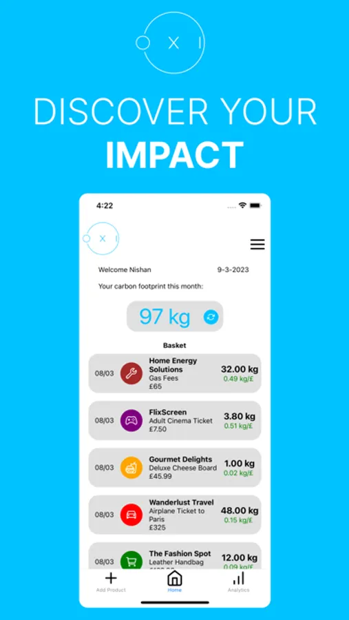 - Oxi Pro: Get access to detailed analytics of your carbon footprint with more features to come!