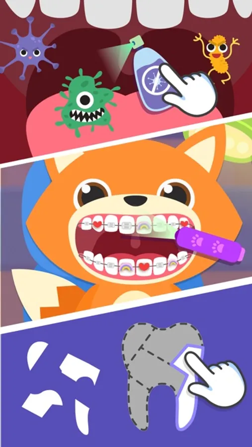 Our app is easy to use and has a fairly simple interface, due to which the kid will be able to play the game on their own, without the help of parents. Now your kids can not only have a good time, but also stop being afraid of dentists.