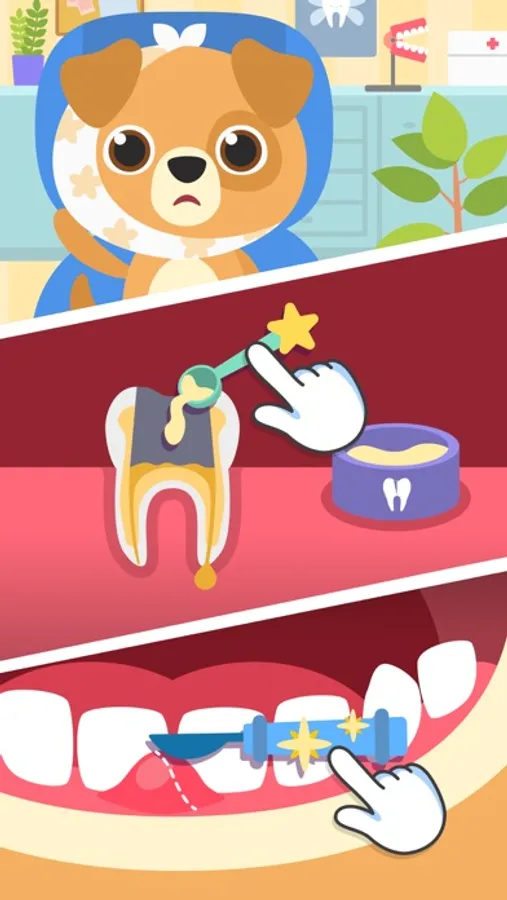 Time to show your dentist skills! Use a hook to take the leftover food out of the fang spinas. Brush the teeth with a brush and a toothpaste. Take a syringe and give an injection so that the animal does not hurt while you treat the gums. Show how good a doctor you are!
