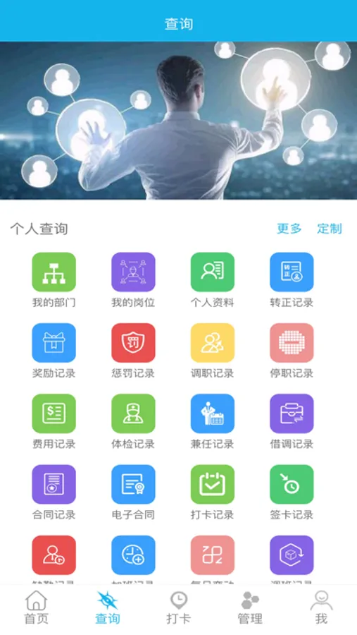 基于移动技术的人力资源管理软件,融合管理软件、移动通信、互联网技术,以提升组织管理能力和战略执行能力为目的,搭建由CEO、HR经理、业务经理和员工共同组成的Web人力资源管理平台。