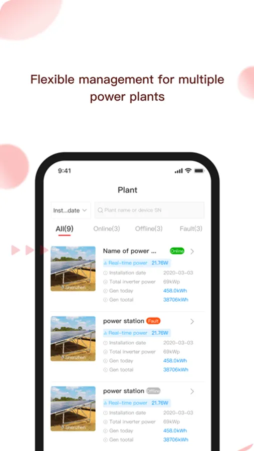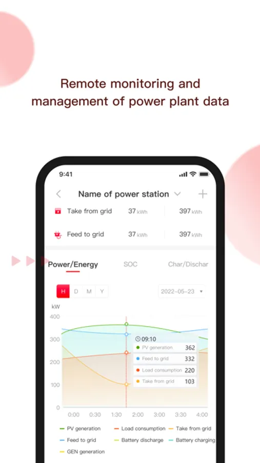 Support users to view the summary data of power stations under their accounts;