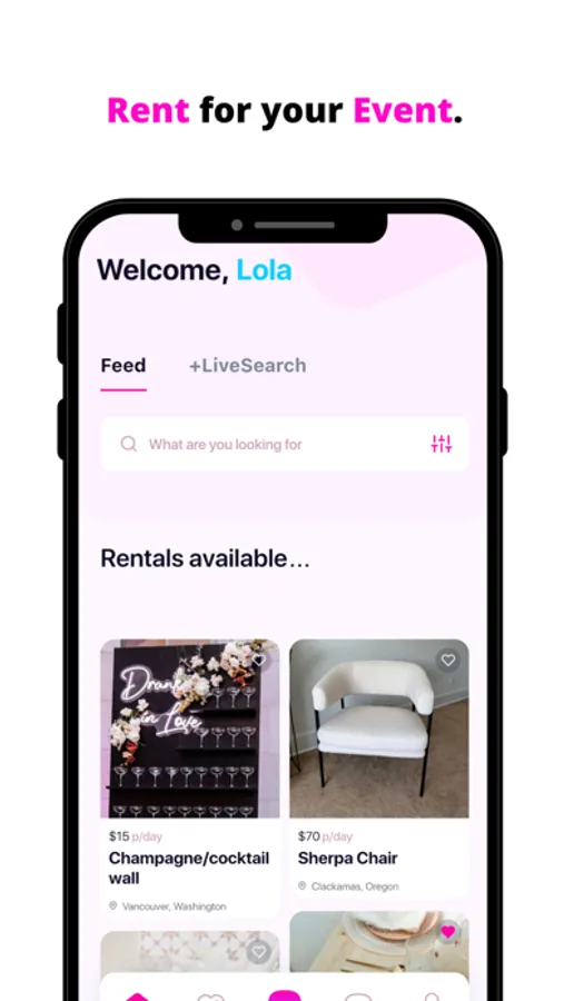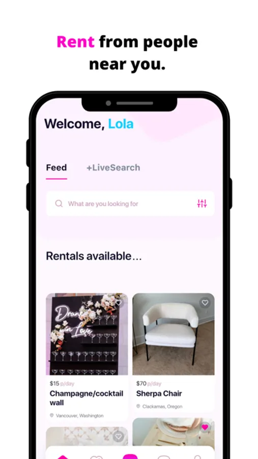 A lender is someone who post their items to the feed to attract renters. As a lender, easily post your items & review the +LiveSearch feed to see what requests renters have.