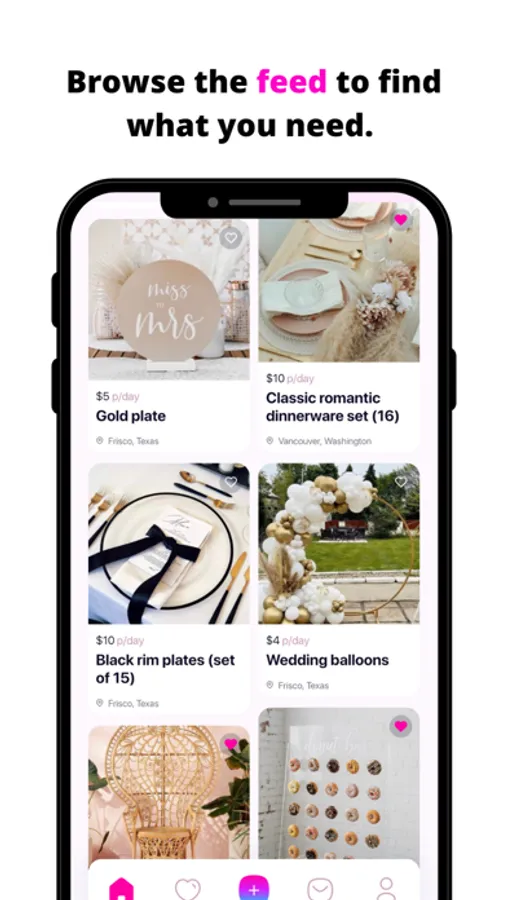 A renter is someone who is seeking to rent an item. As a renter, browse the feed to find the items you want to rent.