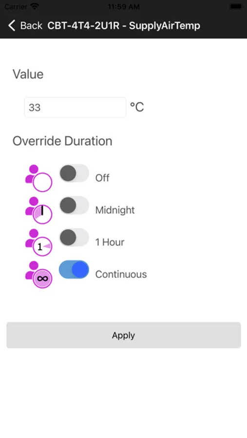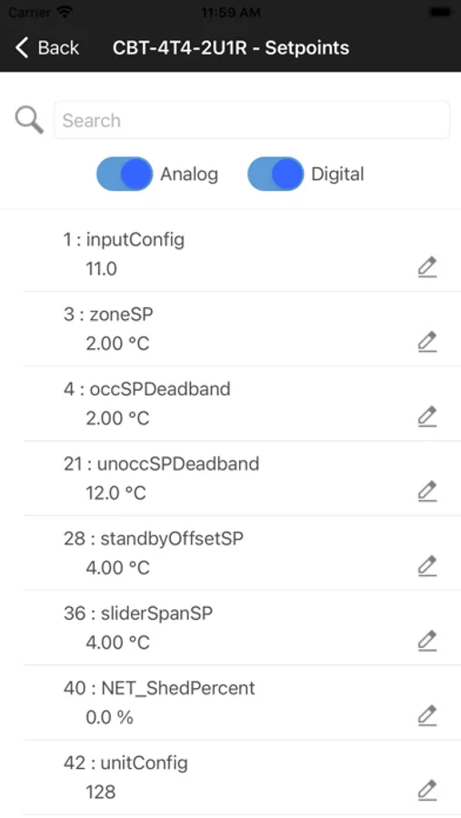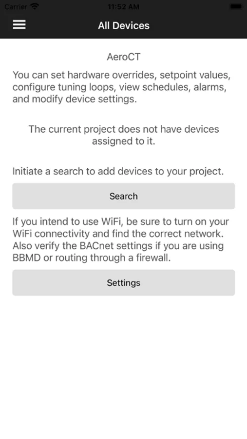 AeroCT is a WiFi and Bluetooth commissioning application that works with the full range of ABB Cylon controllers. System Integrators can choose information that is relevant for tuning and configuring stock or custom strategies they have created. Setpoints, overrides of hardware, schedules, and alarms can be accessed for ease of commissioning and installation checkout.